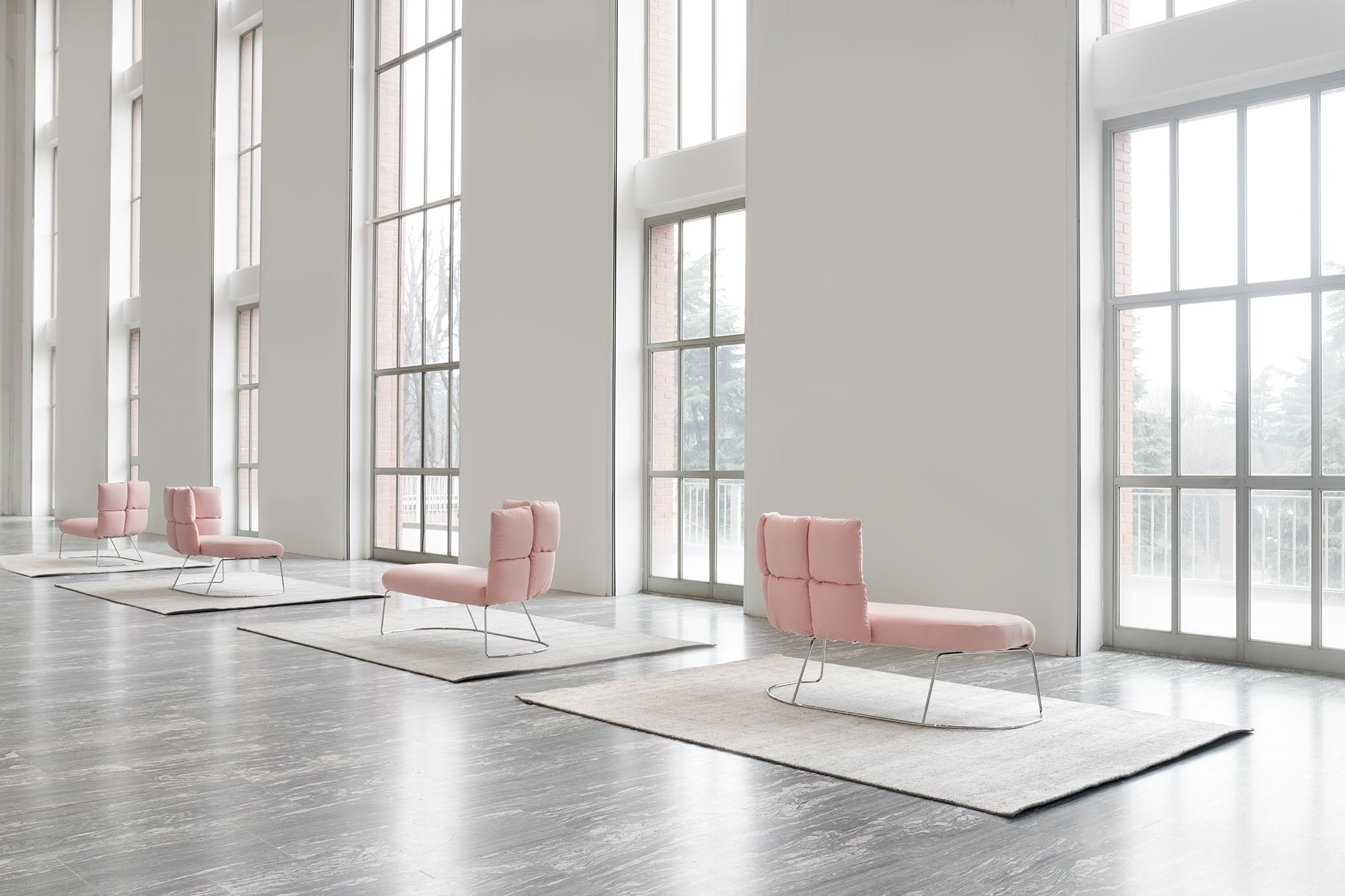 Sofas and armchairs can be freely composed in different width, height and colors. They meet the needs of comfort and sound-absorption.